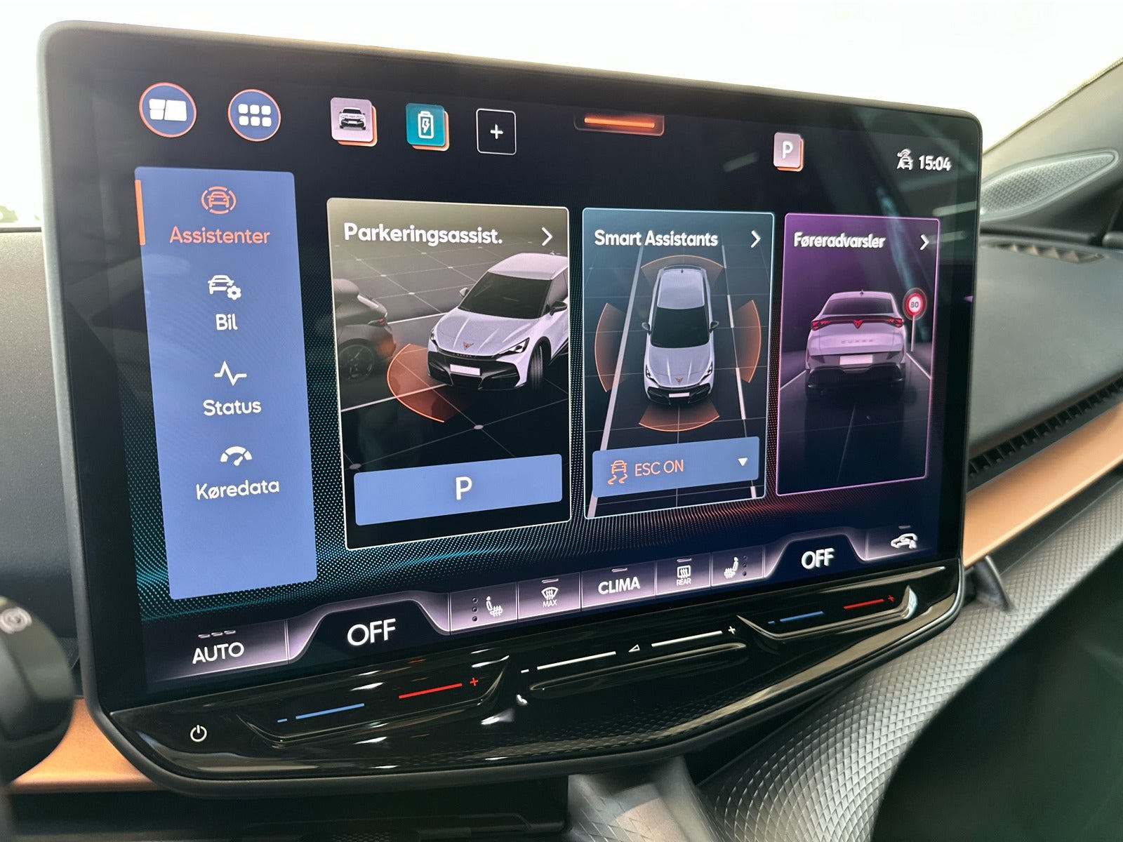 ✅Urano Grey ✅286 hk ✅Glastag ✅MATRIX LED forlygter ✅Sennheiser Lydsystem ✅360* Kamera ✅AR Head-up display ✅El-sæder m. memory i "Dark Knight" interiør ✅21" alufælge kobber detaljer ✅Blindspot Sensor ✅Ambient Light "Immersive" ✅Adaptiv Undervogn ✅Varmepumpe ✅Håndfri elektrisk bagklap ✅Adaptiv fartpilot ✅Travel assist ✅Varme på for og bagsæder ✅Klimaanlæg 3-zoner ✅CUPRA multifunktionslæderrat med satellitknapper ✅Nøglefri betjening ✅15" touchscreen med navigation ✅Trådløs Apple Carplay / Android auto ✅Trådløs mobiloplader ✅Tonede ruder bag ✅Intelligent Park Assist inkl. parkeringssensorer for og bag ✅Navigation ✅Trafikskiltegenkendelse ✅Digital cockpit