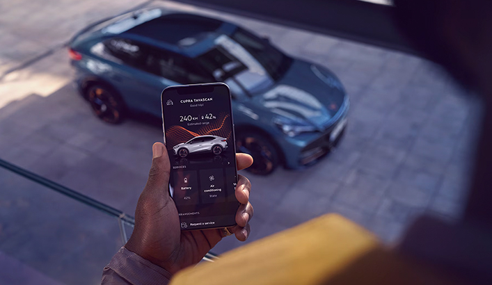 Nyd personlig digitalisering, skarp forbindelse og høj sikkerhed med den nye CUPRA Tavascan. Den nye CUPRA Tavascan har som standard:
